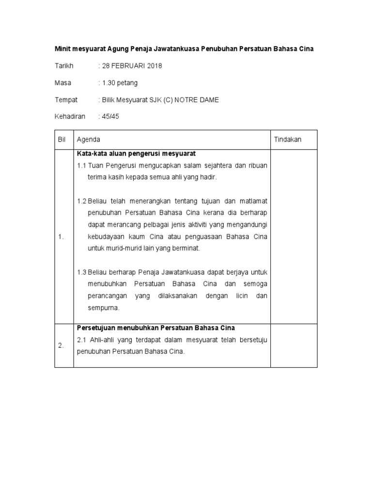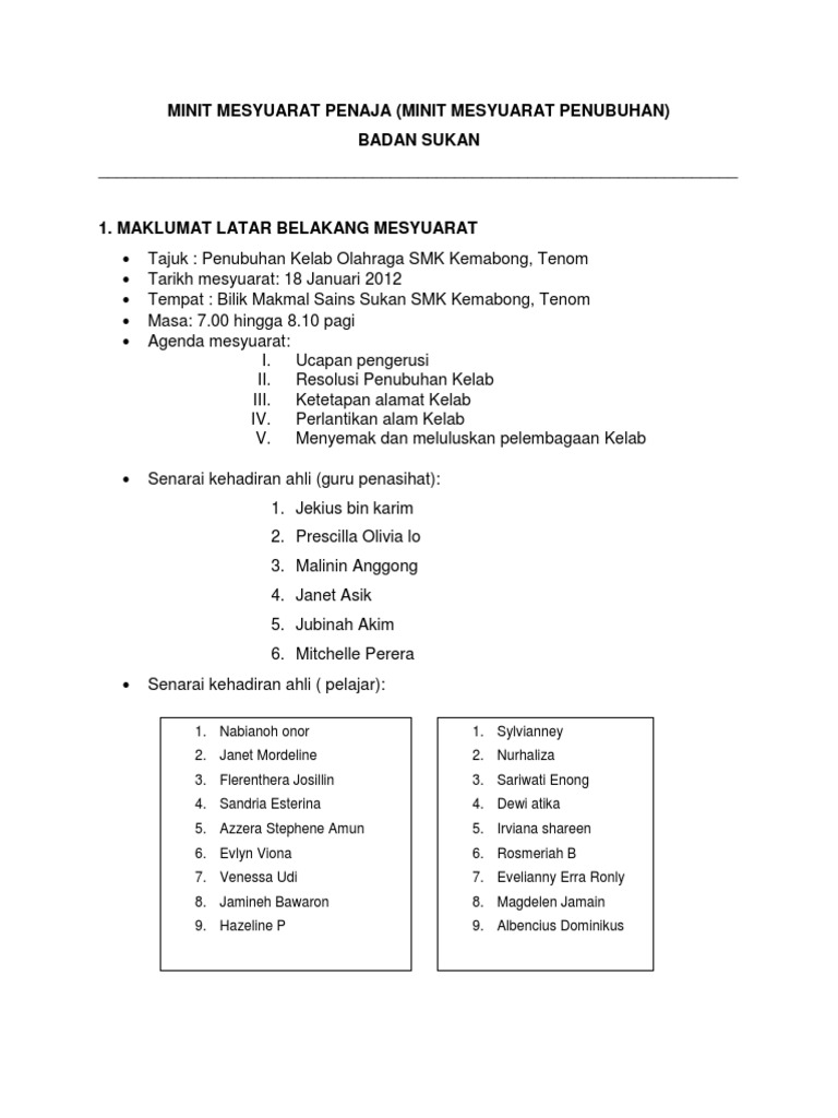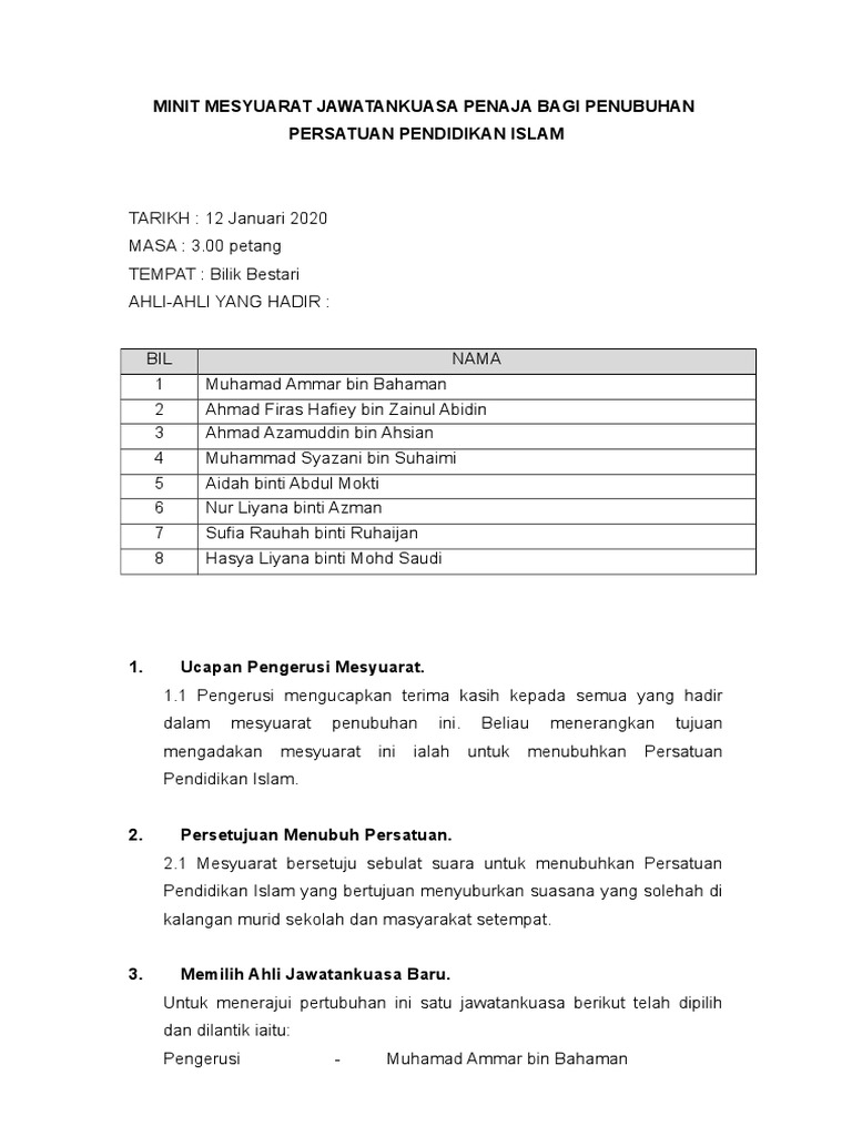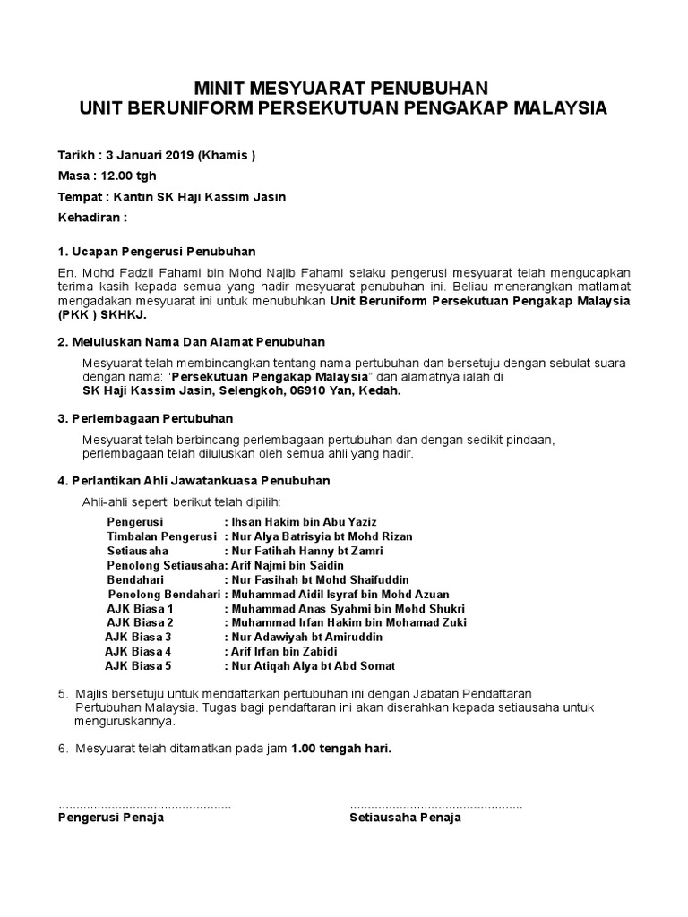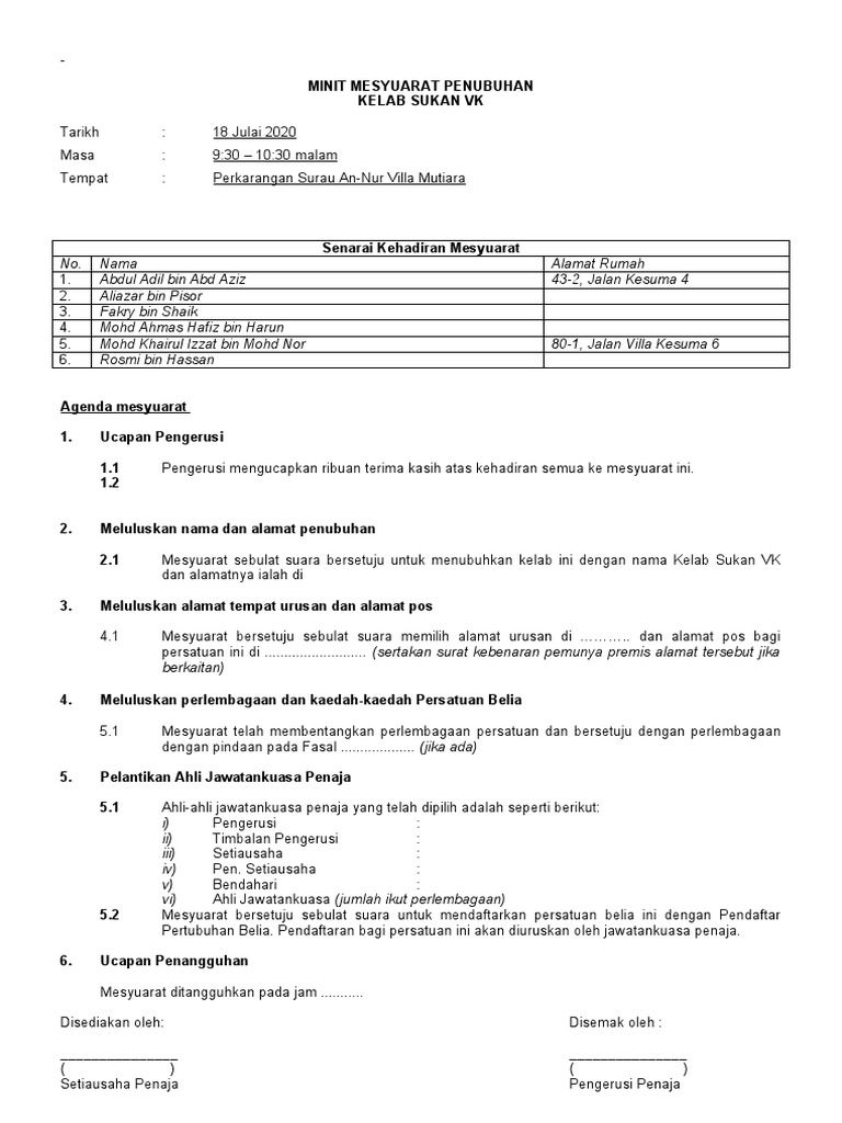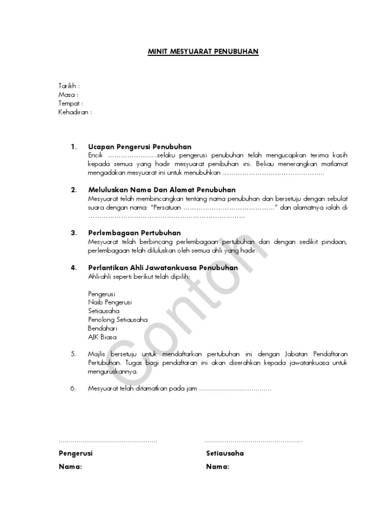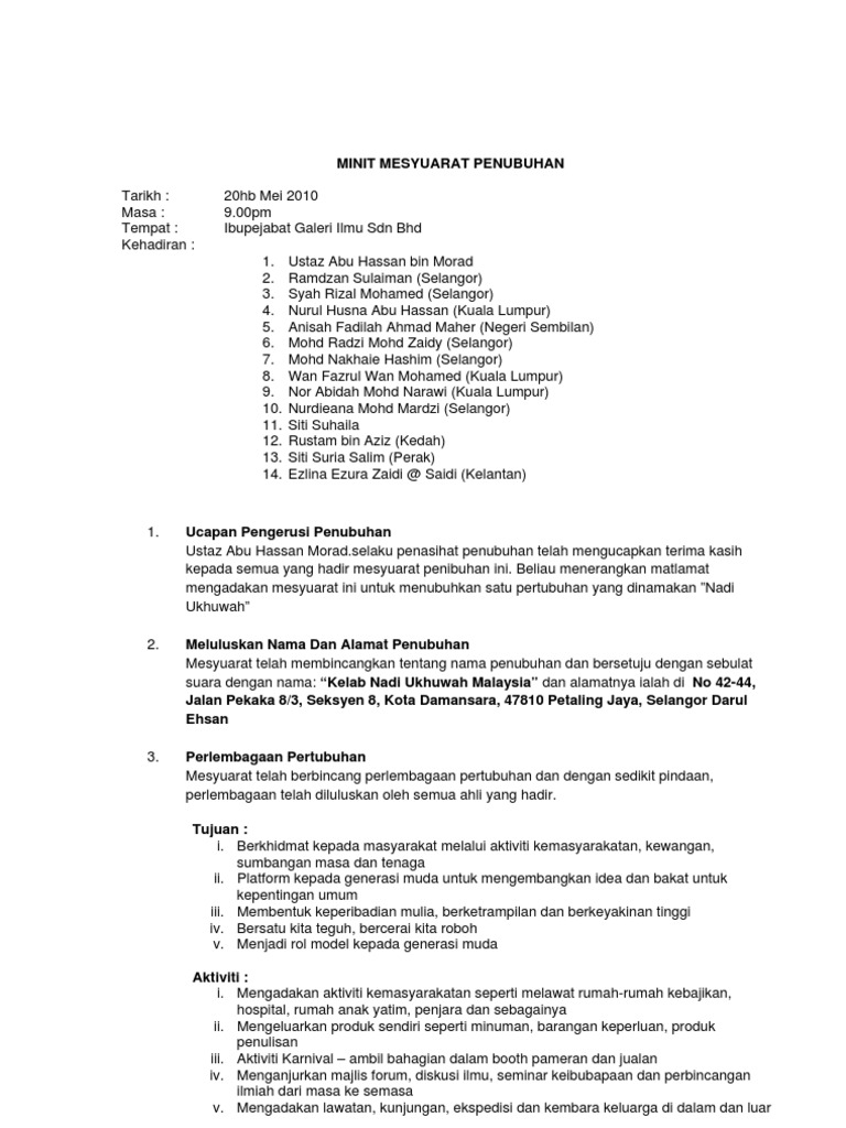 Contoh Minit Mesyuarat Penubuhan Persatuan Pdf