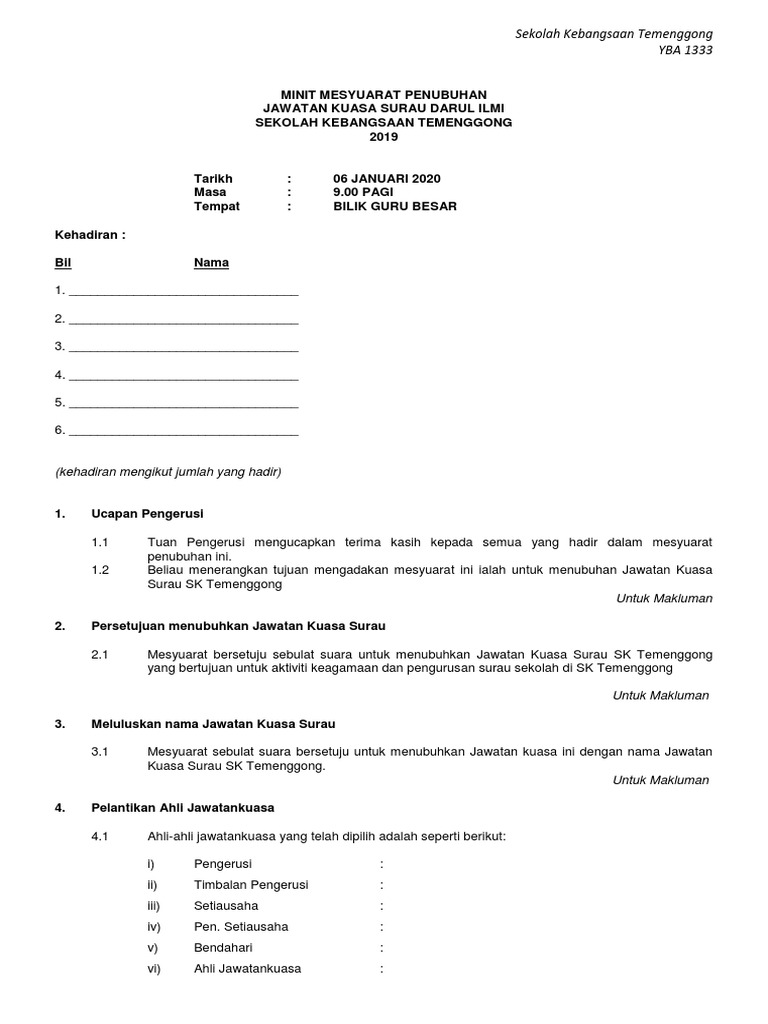 Contoh Minit Mesyuarat Penubuhan Pdf
