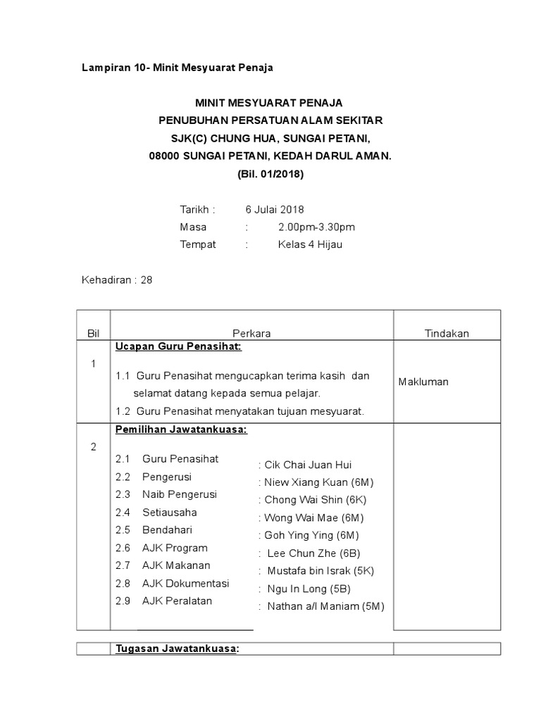 Contoh Minit Mesyuarat Penaja Penubuhan Pdf
